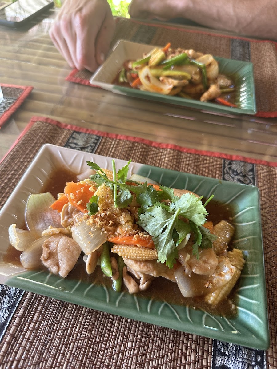 Our best meals yet in Thailand! Everything is freshly cooked with love and amazing flavour, kind owners and great atmosphere. The portions are perfect and better than others on Koh Chang, you actually get a good amount of protein! We ordered the stir fry vegetables with chicken, chilli paste stir fry with chicken, and coconut shakes. We returned again and ordered lemongrass chicken, spicy stir fry chicken with noodles, mango shake, mixed fruit shake, and mango sticky rice. I keep adding pictures to the review as we go, everything is very delcious. Every time we are floored with how delicious K’s cooking is, and the complimentary fruit at the end is always an unexpected and lovely touch. Don’t bother trying other restaurants this one is all you need!
