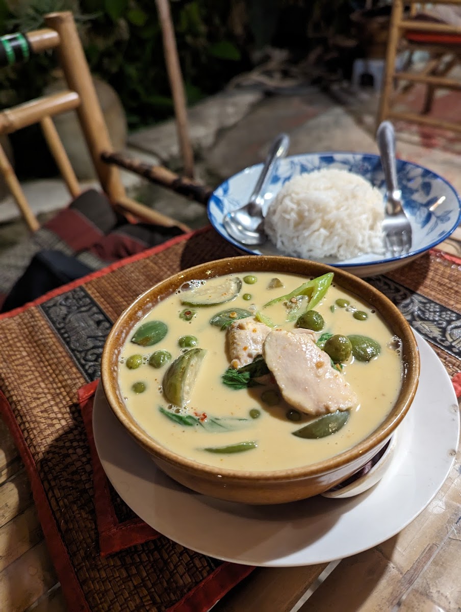 We keep coming back to this place because they have one of the best green and panang curries. You also need to try fried bananas with honey or chocolate sauce, they're divine. Also shakes are really good, especially mango-coconut shake.