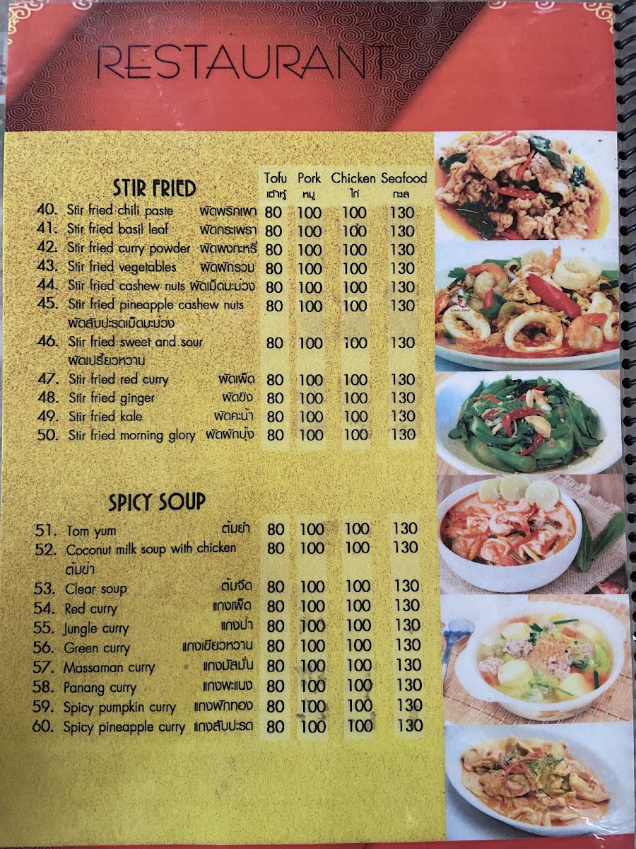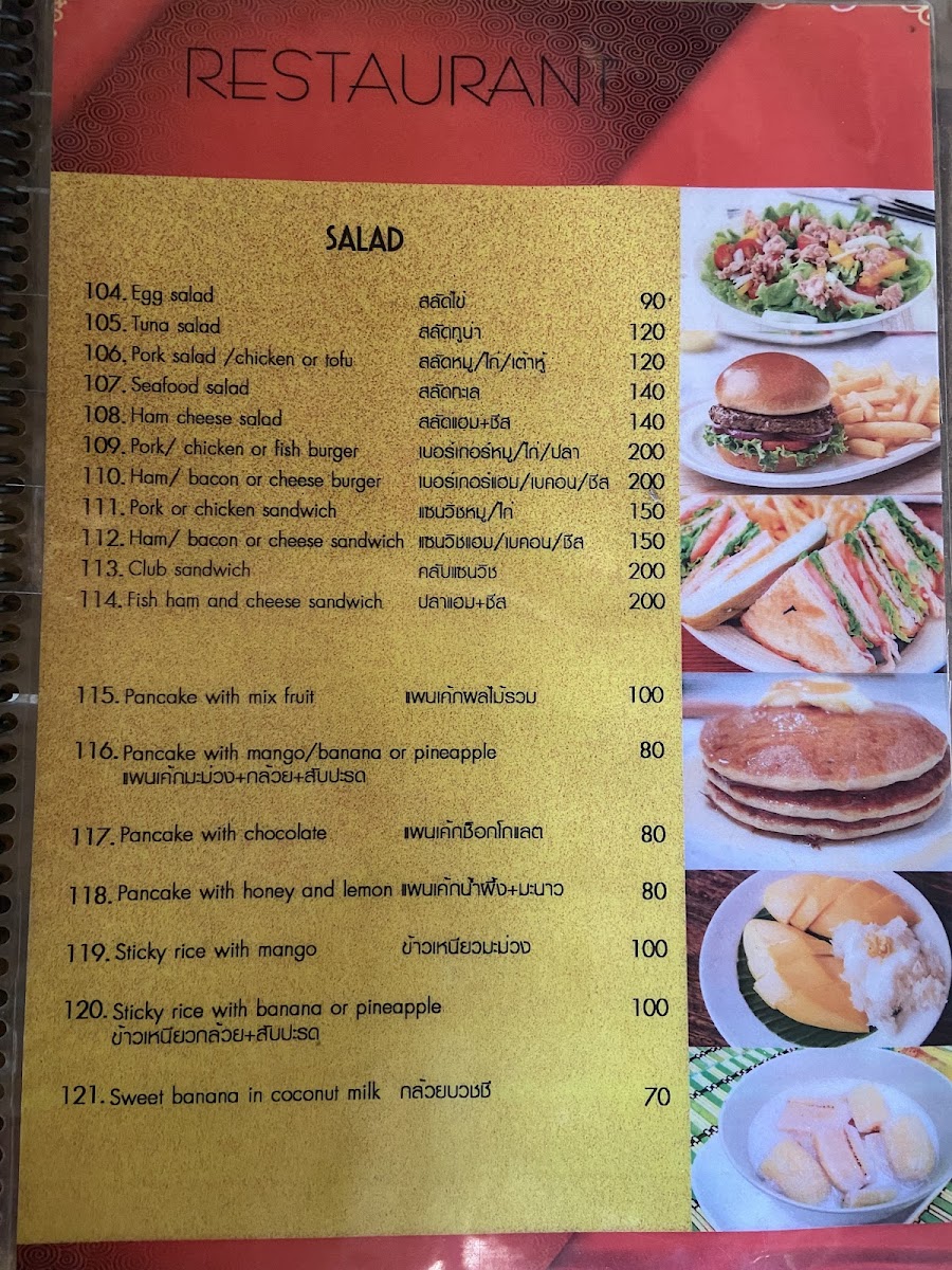 You’ll find a range of dishes from aromatic curries like green and jungle curry to lighter choices such as stir-fried vegetables with chicken or Thai-style glass noodles with fresh vegetables. Sweet moments come with traditional treats like sticky rice with mango or fried bananas, perfect for sharing or enjoying leisurely at any time of day. The menu also includes familiar comfort options like club sandwiches or spaghetti with tomato sauce, blending Thai tastes with something a little more familiar for every palate.